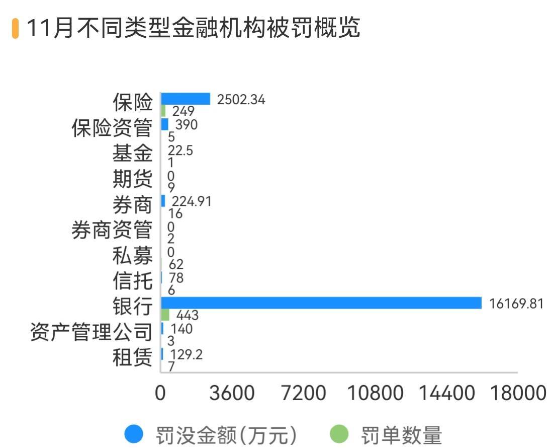 11月金融机构整体罚单数量环比10月明显大增,不过罚没金额环比下降47.88%。