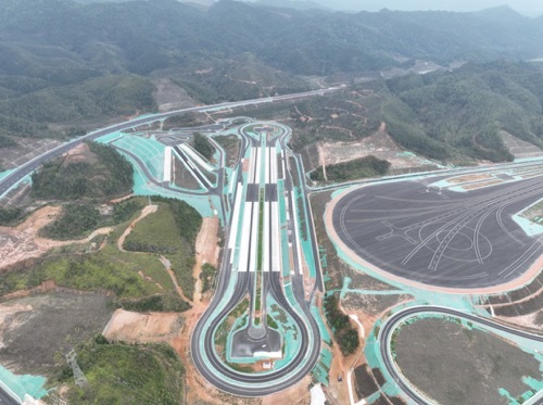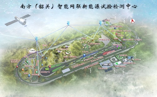 南方(韶关)智能网联新能源汽车试验检测中心(以下简称“南方试验场”)总占地8600亩、获批空域100平方公里,配备8500米高速环道、直径300米动态广场、1800米动态性能路及34种特征路面综合测试区,并同步建设机库、起降点、5G-A基站与全域气象系统,构建起覆盖地面与低空的全场景测试环境。这一“硬核配置”,使其成为兼具道路测试与低空飞行验证能力的综合性国家级平台。